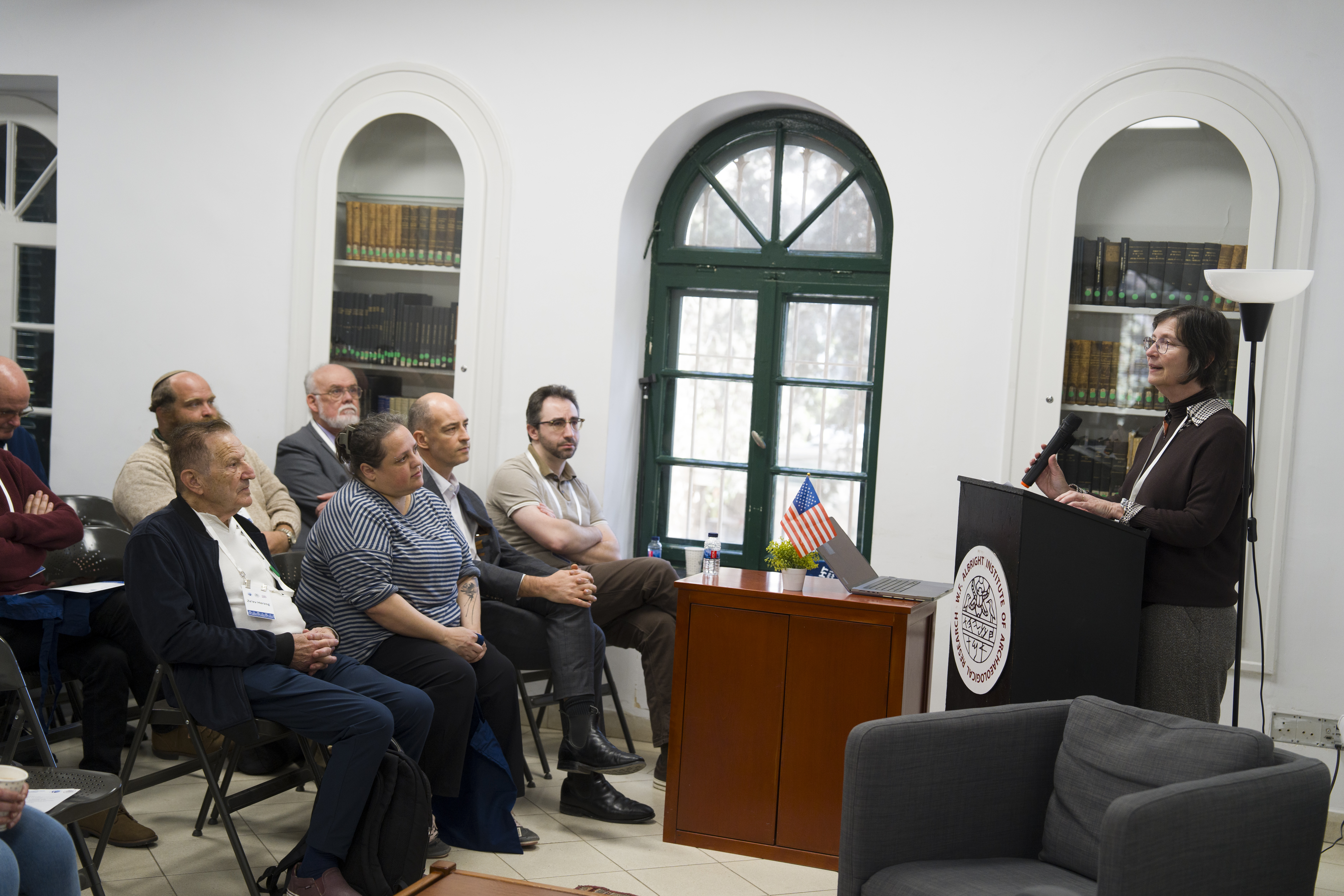 The full-day event was held at the Albright Institute in Jerusalem and was attended by scholars from diverse institutions, research focuses and generations, seeing a 50-year span of Fulbright Israel alumni, including those from 1976 to the current fellows in 2026! The event displayed an exciting variety of conversations, research presentations and addresses, highlighting the significant contributions of American and Israeli scholars to archaeology and the premodern world. It was an honor for the attendees to be joined by the Honorable Mike Huckabee, United States Ambassador to Israel, who opened the reception, speaking warmly of the Fulbright program and his deep admiration of the field.